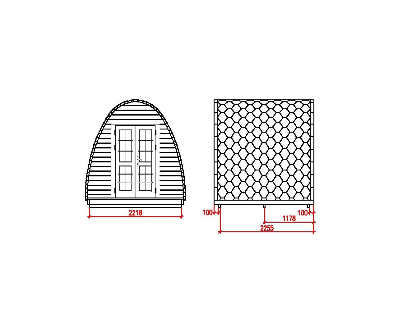 Entdecken Sie die Gemütlichkeit unserer maßgefertigten Schlafkabine von Woodprofessional. Mit einer Höhe von ca. 2,4 m und einer Grundfläche von 2,4 m² bietet diese Kabine Platz für 2 Personen. Hergestellt aus hochwertigem Kiefernholz mit einer Wandstärke von 46 mm und einem Boden aus 28 mm starken Kiefernholzbrettern bietet diese Kabine eine solide Konstruktion und ausreichend Platz für erholsame Nächte im Freien. Das Dach ist mit strapazierfähigen Bitumenschindeln gedeckt, während die doppelt verglasten Fenster und die französische Tür für Komfort und eine romantische Atmosphäre sorgen. Genießen Sie die Natur von Ihrer eigenen kleinen Schlafkabine aus und erleben Sie unvergessliche Nächte unter dem Sternenhimmel.