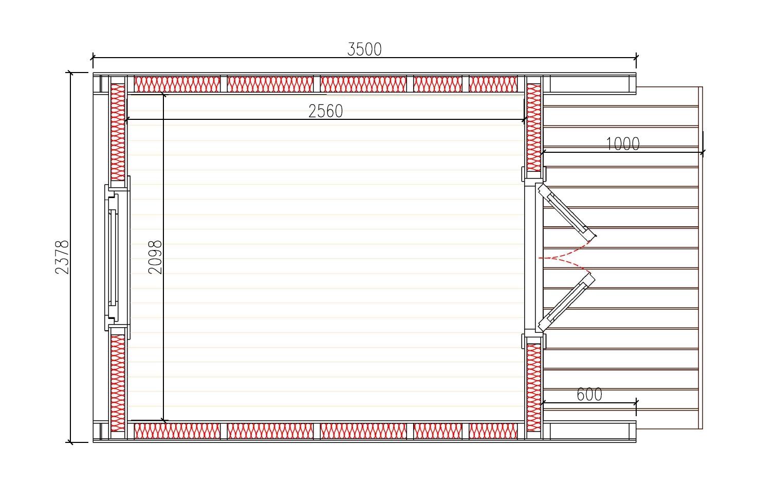 ✔ Steinwolledämmung: 100 mm (Boden und Wände)