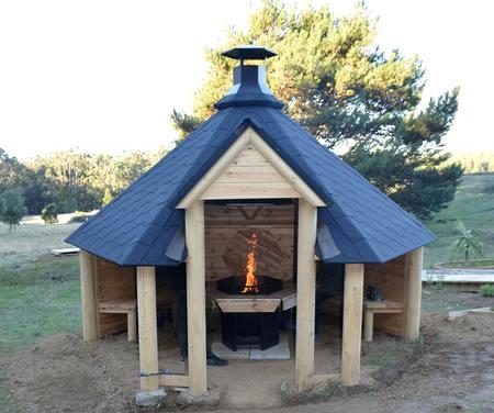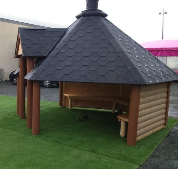 Genießen Sie unvergessliche Grillmomente im Freien mit der Dunkelgrauen Offenen Grillkota von Woodprofessional! Diese robuste und einladende Grillecke bietet eine großzügige Innenfläche von 9,2 m² und ist ideal für Zusammenkünfte von 6-9 Personen geeignet. Hergestellt aus hochwertigem Kiefernholz mit einer stabilen Wandstärke von 45 mm und einem unterstützenden Balken von Ø 160 mm bietet diese Grillkota eine zuverlässige Konstruktion, die den Elementen standhält. Das Dach mit finnischen Bitumenschindeln schützt vor Regen und Sonne und verleiht der Grillecke eine rustikale Note. Mit einem zentralen Standard-Grill und einem umlaufenden Tisch bietet diese Grillecke ausreichend Platz für köstliche Grillgerichte und gesellige Zusammenkünfte im Freien. Die 3 Bänke, die an den Wänden befestigt sind, bieten komfortable Sitzgelegenheiten für Ihre Gäste. Bitte beachten Sie, dass Grill, Bänke und zusätzliche Innenwände separat bestellt werden müssen.