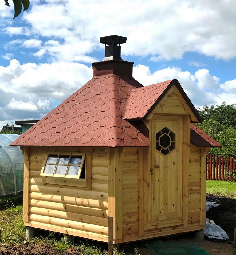 ✔ Sauna room with 1 hexagon window, inside benches and heat resistant plates for the heater/stove
